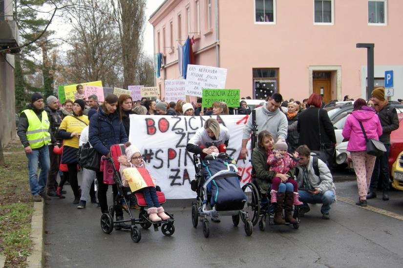 Sisak, 22.12.2018 - Udruga osoba s invaliditetom Sisačko-moslavačke županije u suradnji s udrugom Kolibrići održala je prosvjednu šetnju "Sisak za Matu - spinraza za sve", u znak potpore dječaku Mati Bešliću, oboljelom od spinalne mišićne atrofije tip 1, odnosno borbe za lijek Spinrazu. foto HINA/ ds