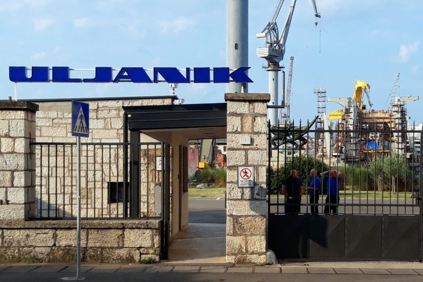 Pula, 31.08.2018 - Predsjednik trajkakog odbora Uljanika Ðino verko poruèio je u petak ujutro kako su radnici jo uvijek u trajku i bit æe dok im se ne isplati plaæa, a da plaæu jo nisu dobili jer su oèito u tijeku operativne radnje koje se odnose na potpisivanje dokumenata u bankama. Na slici ulaz u Uljanik. foto HINA/ Daniel SPONZA/ ds