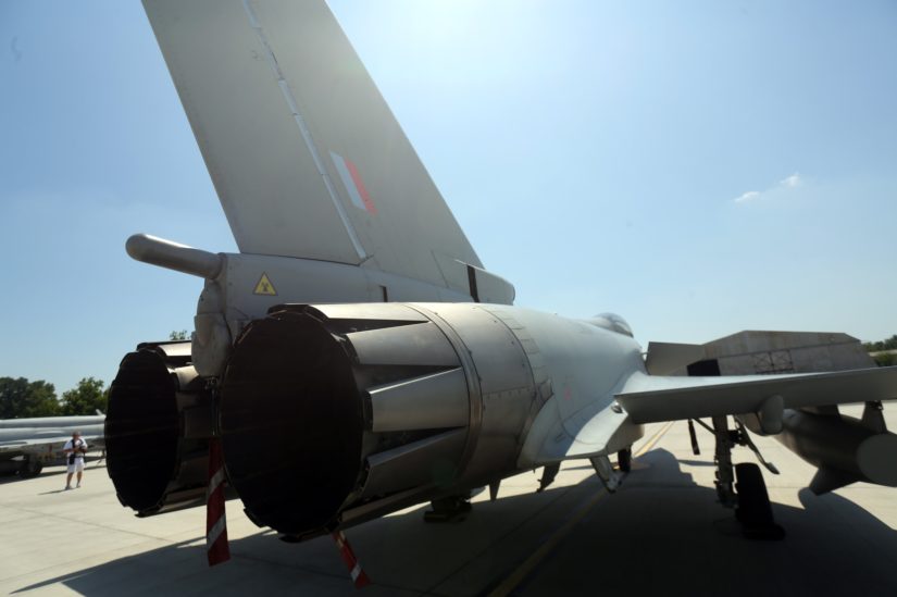 Zagreb, 19.7.2018.- Vježba HRZ-a i RAF-a "FLYING SABRE 18", u vojarni "Pukovnik Marko Živković" na Plesu. Na fotografiji borbeni zrakoplov Eurofighter Typhoon. foto HINA/ Daniel KASAP/ dk