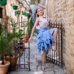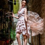 Kolekcija se oblikuje oko ideje ravnoteže između kontrole i oslobađanja. Konstrukcija odjevnih komada naglašava precizno definiranu siluetu: strukturirani gornji dijelovi i istaknuti struk uspostavljaju jasnoću forme, dok slojeviti, kaskadni volani unose pokret, lakoću i osjećaj fluidnosti. Upravo u toj napetosti između arhitektonske discipline i mekoće materijala razvija se prepoznatljiv vizualni identitet kolekcije.
