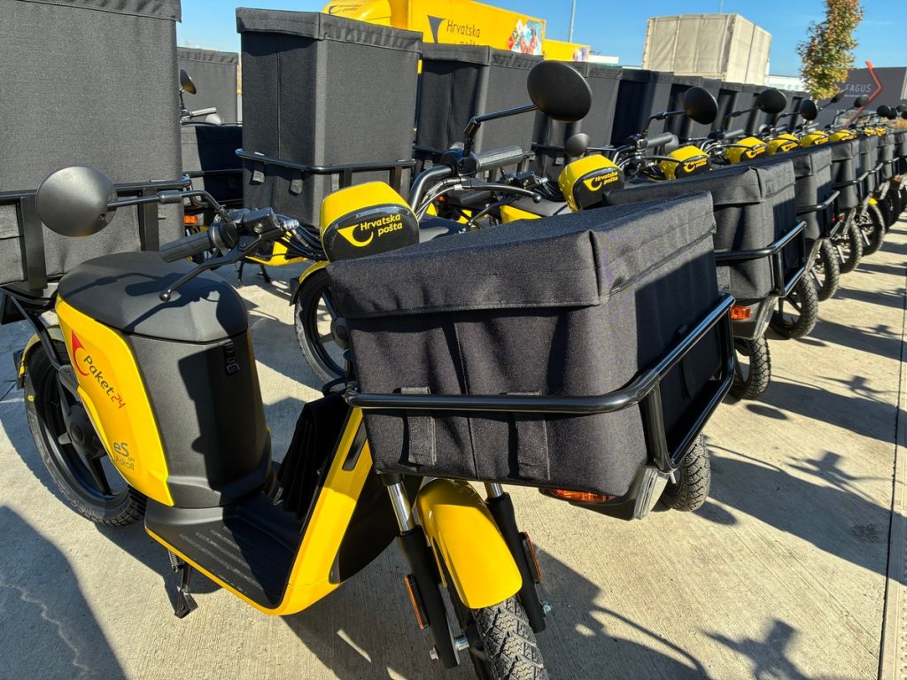 Hrvatska pošta preuzela je prvih 70 od ukupno 255 novih električnih mopeda marke Askoll ES PRO. Isporuka novih električnih mopeda bit će dovršena tijekom studenog, a mopedi će se koristiti za dostavu na području Zagreba, Splita, Rijeke, Osijeka, Zadra i Bjelovara. Vrijednost ugovora iznosi 1.654.256,40 EUR s PDV-om, a financijski leasing trajat će četiri godine.