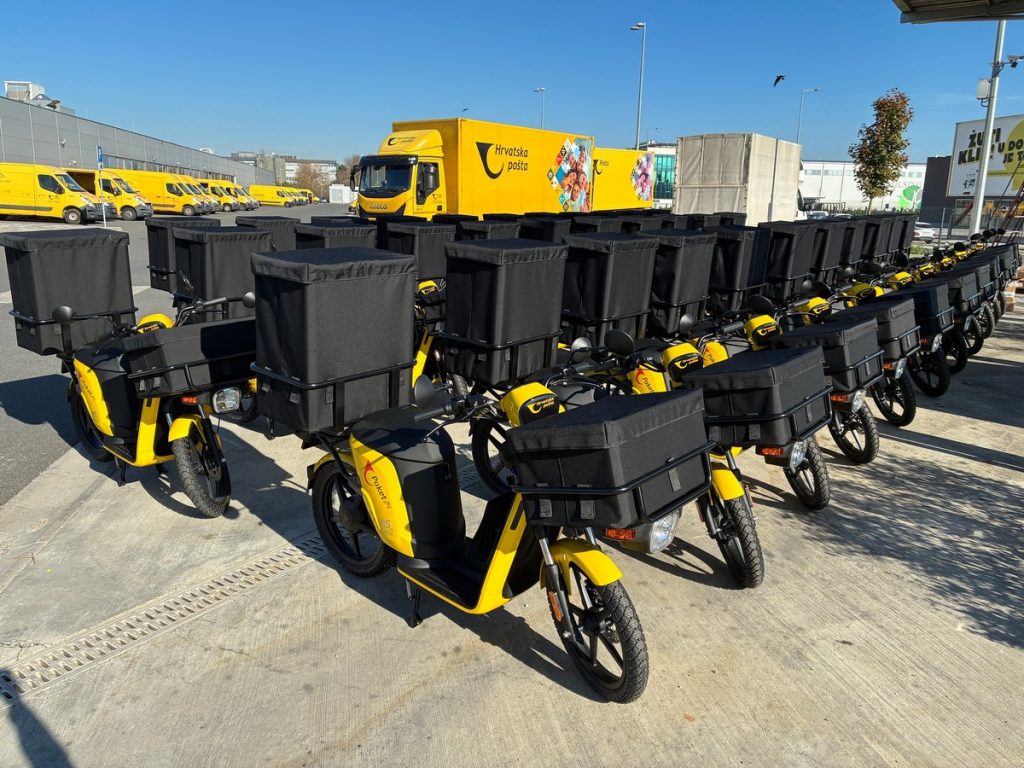 Električni vozni park Hrvatske pošte s novim mopedima broji ukupno 619 vozila koja uključuju i bicikle, četverocikle, osobna vozila, laka dostavna te poluteretna mala vozila. Hrvatska pošta razvila je i vlastitu mrežu punionica za električna vozila koja broja 77 punionica smještenih u 20 gradova diljem Hrvatske. Punionice imaju 123 mjesta punjenja, a većina ih pruža snagu punjenja od 22 KW AC.