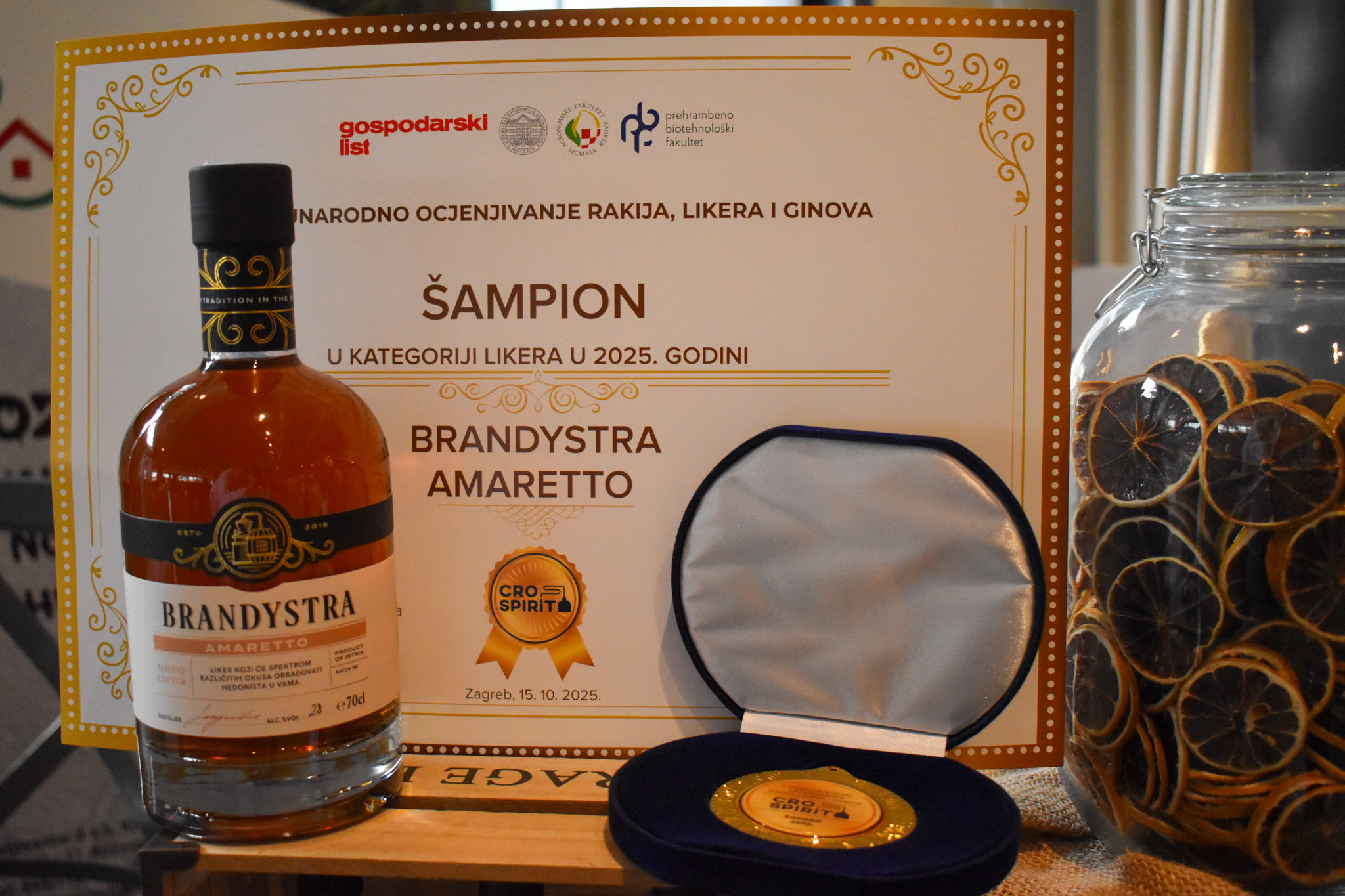 🏆 Ukupni šampion – Amaretto destilerije Brandystra (Istra), s osvojenim velikim zlatom i rekordnom ocjenom 19,2, ujedno je i najbolje ocijenjeni liker.