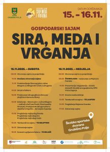 Devetnaesti Gospodarski sajam sira, meda i vrganja održava se tijekom dva dana, od subote do nedjelje, 15. i 16. studenoga u sklopu školsko sportske dvorane u Grubišnom Polju, u organizaciji Grada Grubišnog Polja, Turističke zajednice područja Južna Bilogora i Razvojne agencije AGRO.